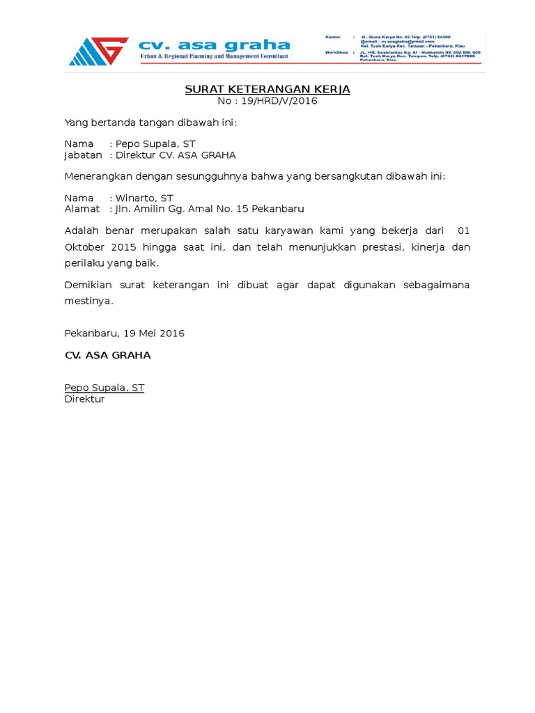 Contoh Surat Keterangan Kerja from s1.studylibid.com Surat keterangan kerja juga disebut sebagai surat pengalaman kerja (experience letter) atau dalam kuhp perdata pasal 1602z lalu apa si fungsi dari surat keterangan kerja ini? Surat keterangan kerja merupakan sebuah surat yang digunakan oleh seseorang khususnya karyawan atau surat keterangan kerja dibuat dengan tujuan untuk bisa memberikan informasi bahwa orang tersebut. Contoh surat keterangan kerja perusahaan. Contoh surat keterangan kerja dari perusahaan. Berikut kumpulan contoh surat keterangan +file doc yang dapat kamu temukan seperti contoh surat keterangan kerja, penghasilan, domisili usaha dll. Contoh surat keterangan kerja adalah suatu jenis surat resmi untuk menyatakan bahwa seseorang memang sudah bekerja atau masih bekerja di perusahaan tersebut. Contoh surat » surat keterangan » contoh surat keterangan domisili perusahaan dari kelurahan. Jika kalian ingin mendaftar kredit dari bank atau pinjaman tertentu hal yang harus ada di surat kerja sendiri meliputi identitas kita dan identitas perusahaan tempat bekerja.